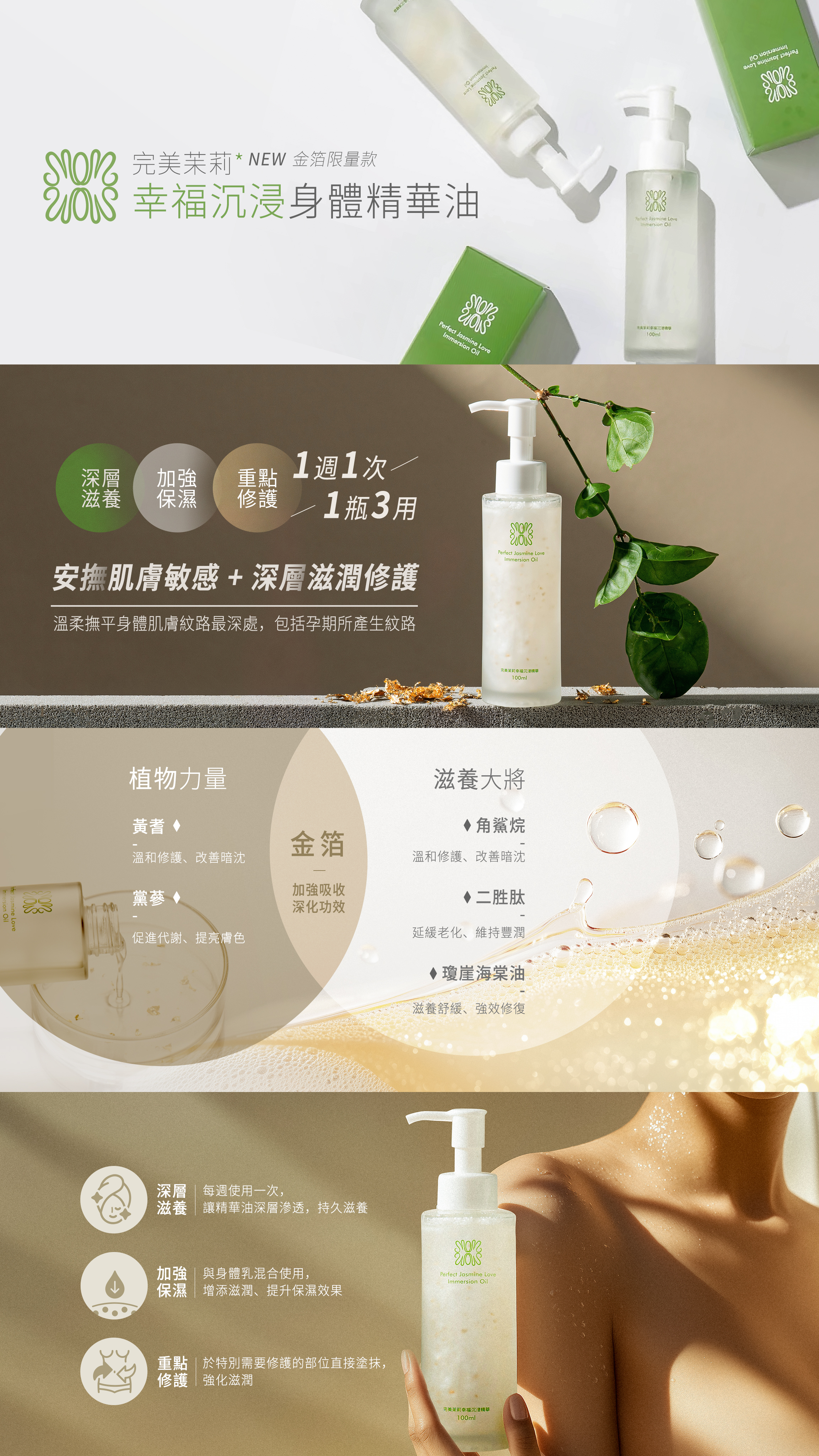 (1)金箔-完美苿莉幸福沉浸精華油120ml*1,價值2180