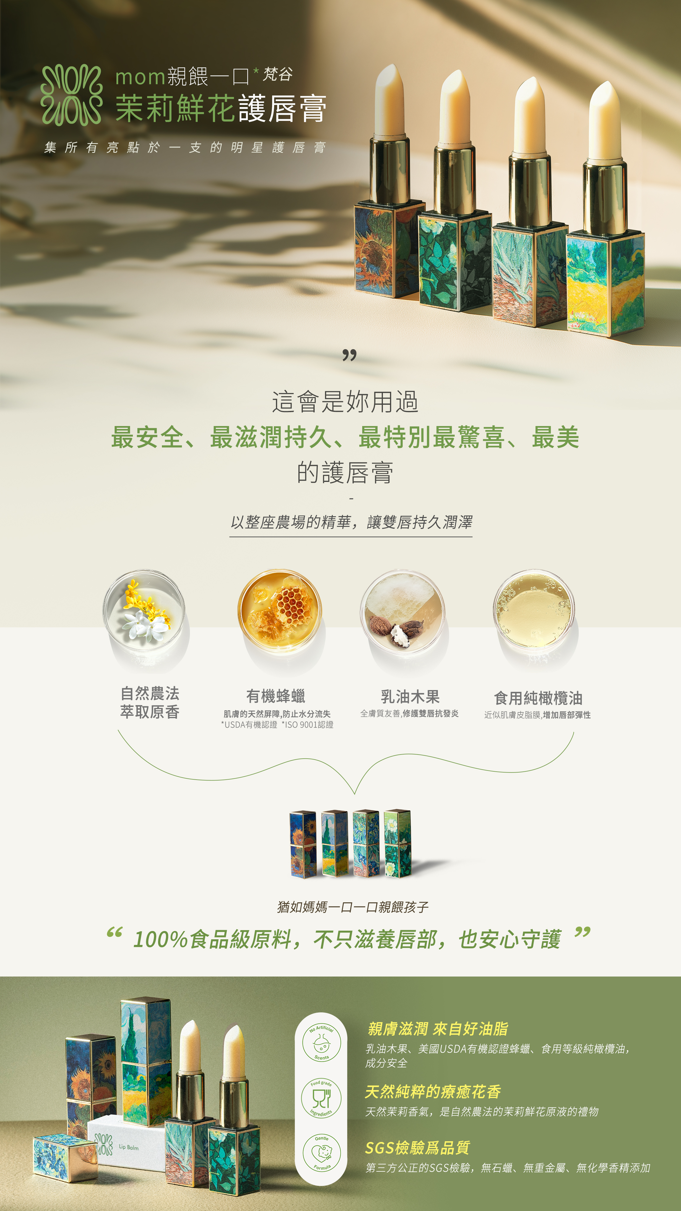 猶如媽媽一口一口親餵孩子的愛,王媽媽用整座農場的精華成分灌溉,再綴上珍貴的苿莉香氣。